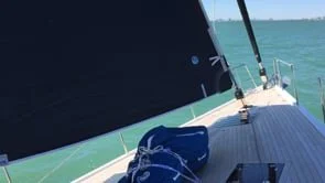 Zum Test hissen wir die Sturmfock - in Signalfarbe. Bei Windstärken ab 45 Knoten (83 km/h, Windstärke 9) geht es um Sicherheit, nicht um Ästhetik.
