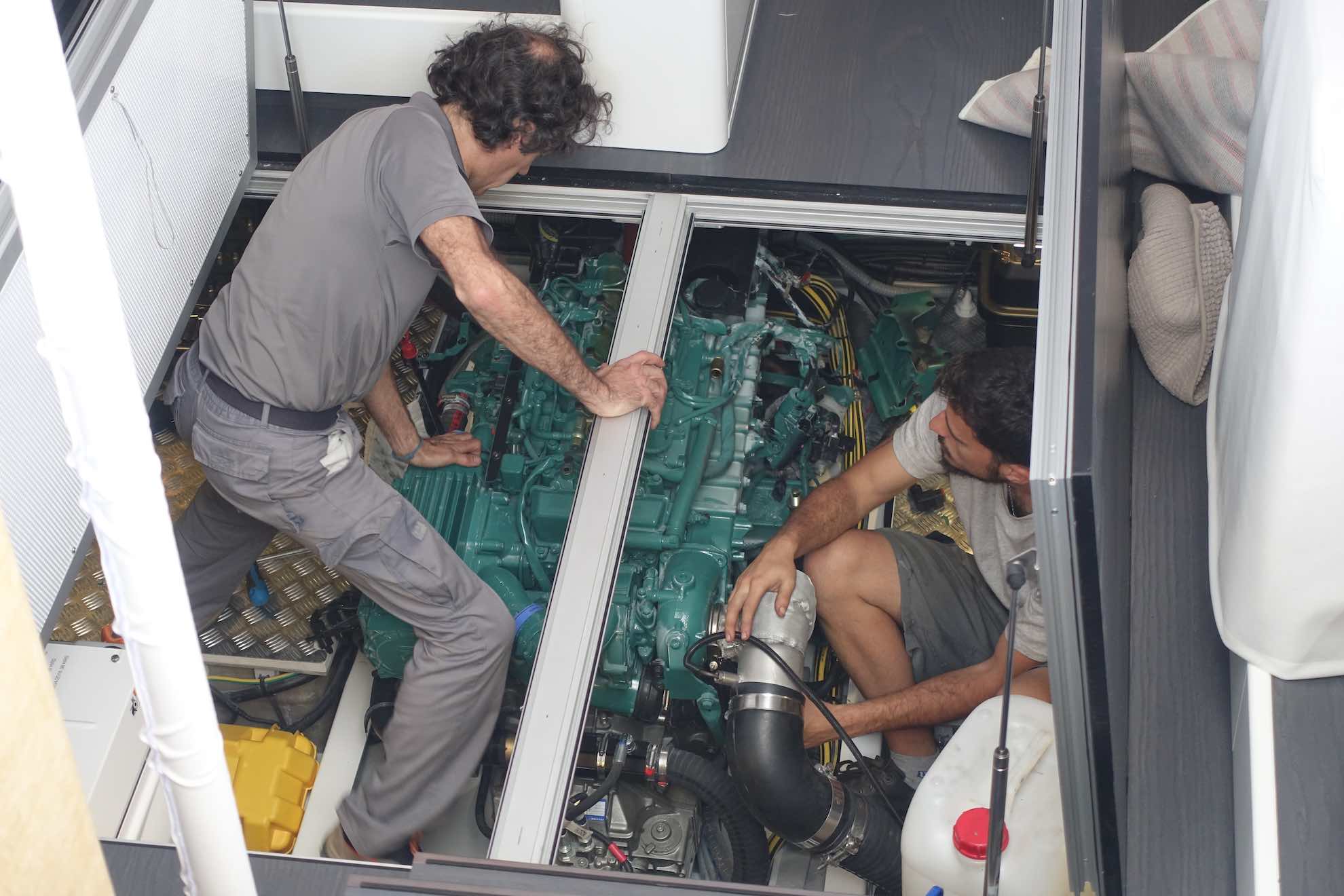Zum Glück ist nichts kaputt gegangen und wir konnten zunächst weiter fahren. Der Motor muss jedoch komplett zerlegt und gereinigt werden. Das kann Tage dauern.