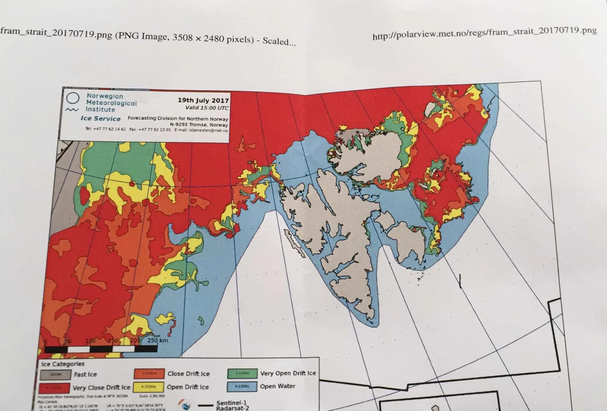 Wir wollen weiter nach Norden. Es sieht gut für uns aus auf der Eiskarte.