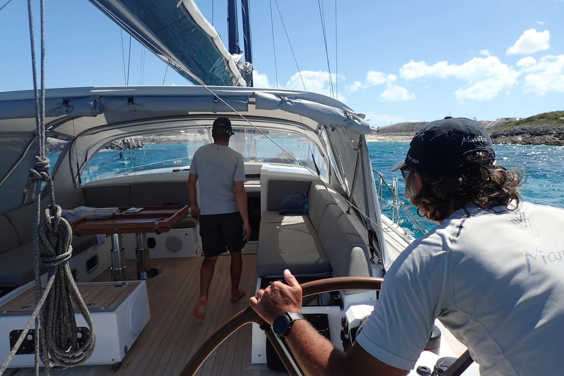 Die Einfahrt ist schmal und voller Untiefen aus Korallenfelsen. Kritisch – unsere Seitenstrahlruder sind ausgefallen. Dennoch legen wir sauber und ohne Kratzer an.